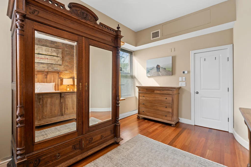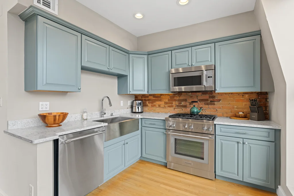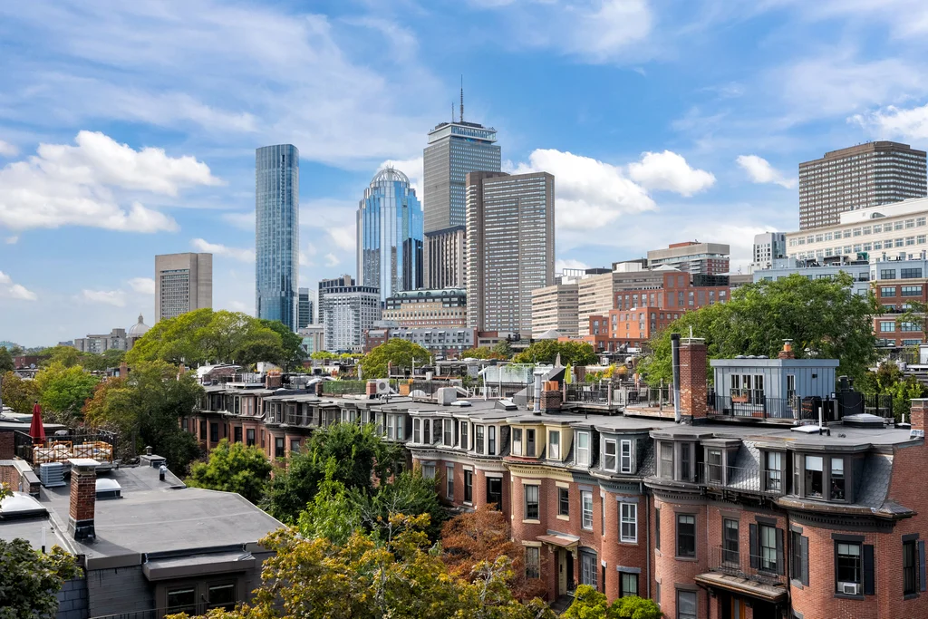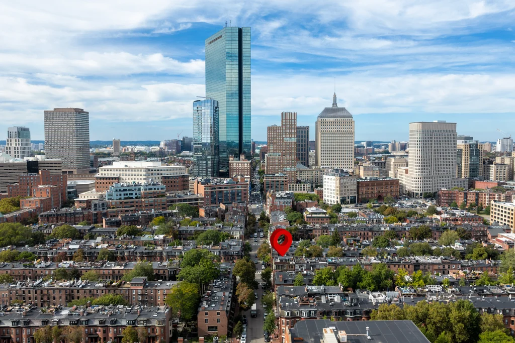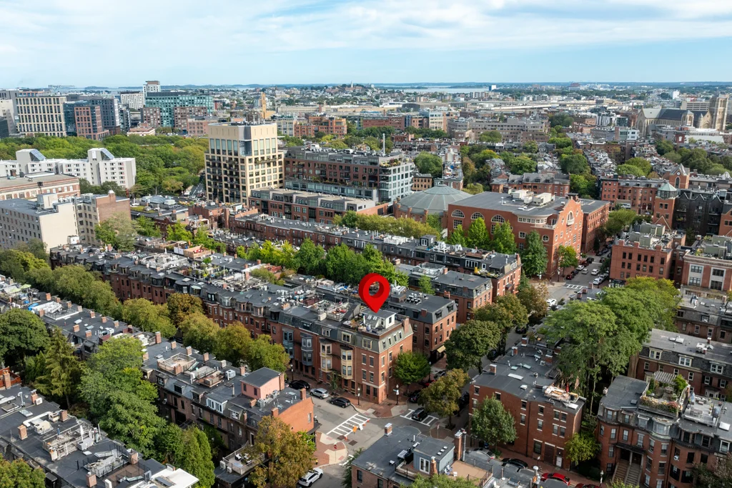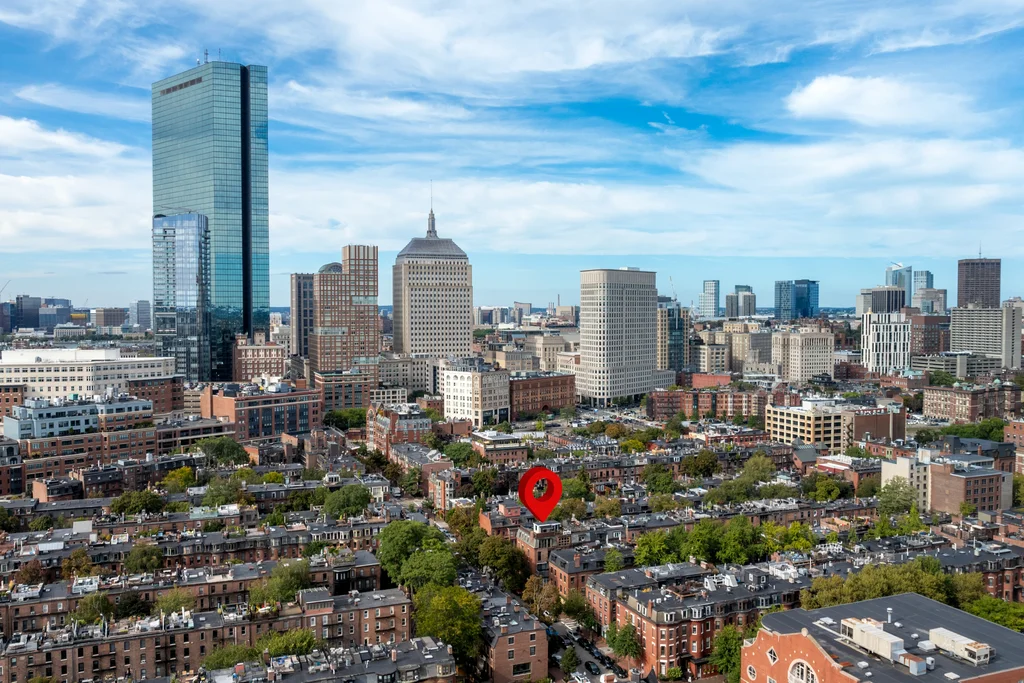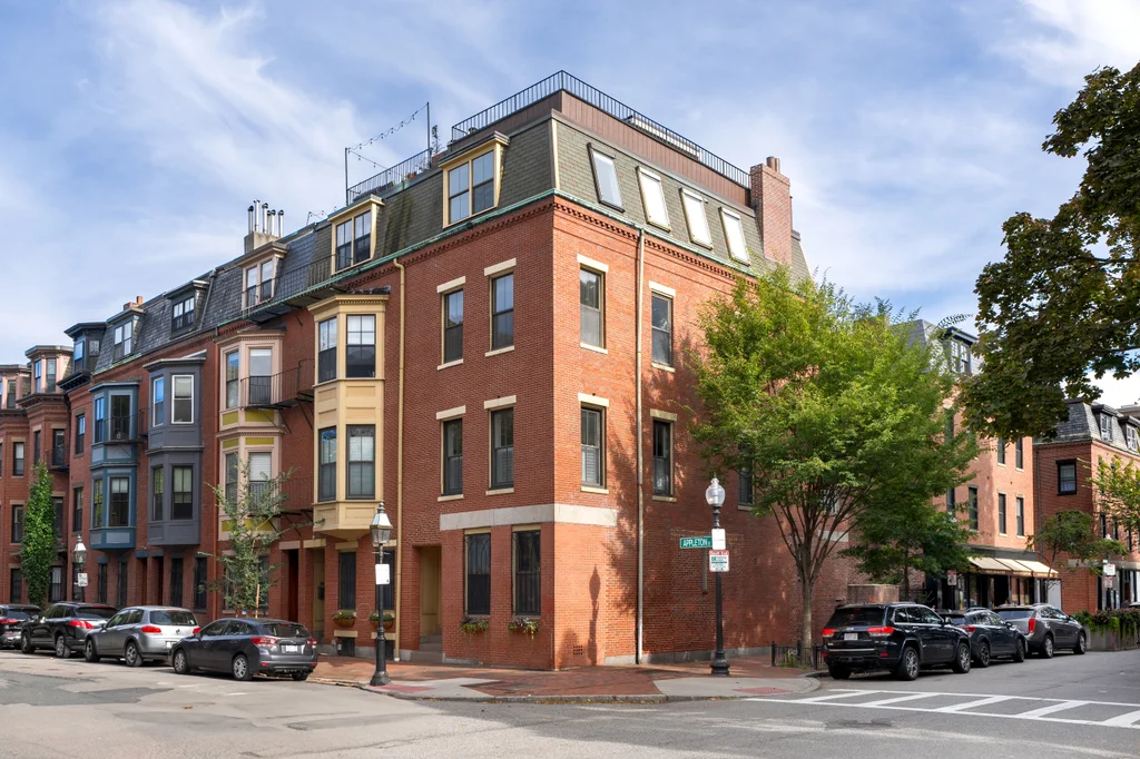 This penthouse duplex offers three exposures providing tremendous light, openness, and soaring city views. The open concept living and dining areas feature six updated windows, built-in shelving, and a wood-burning fireplace with a restored marble mantle. The new kitchen features floor-to-ceiling windows, custom cabinetry, quartz counters, a Thermador gas range, microwave, and dishwasher, a Sub-Zero refrigerator, and a breakfast bar. The primary bedroom has a corner exposure and an exposed brick wall. The second bedroom has built-in shelving, a large closet, and a W/D. Completing this floor is a full bath with a custom vanity, a soaking tub, and a tiled shower. A special feature of this penthouse unit is the head house/ office leading to the oversized private roof deck. Other features include: refinished hardwood floors, new forced air heating and cooling, recessed lighting, and new interior paint. 72-74 Appleton Street is a small, five-unit, professionally managed association located just steps from fine shops, restaurants, rental garage parking, public transportation, and all Boston offers.